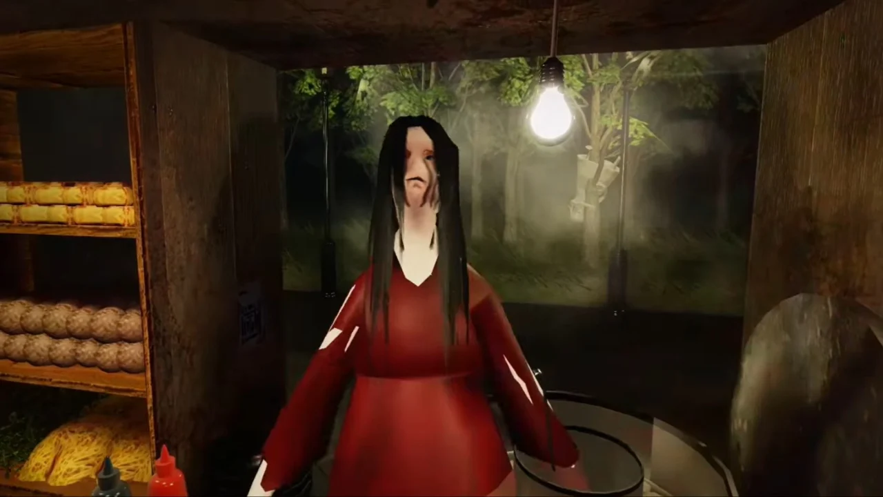 The Grandmother resembles an older lady and has quick black hair, a big nostril that resembles a pig’s nostril and mouth, and wears a pink blouse and black trousers. Don’t be fooled, as when she jumpscares you, her face turns a dismal gray with black eyes and an open mouth as she lunges ahead.